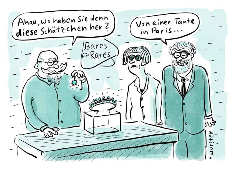 Dieser Cartoon fürs nd wird es nicht mehr in die Ausstellung schaffen, aber meine schönsten, sonderbarsten, absurdesten, komischsten, nettesten und garstigsten sind zu sehen, ab Freitag abend in der Caricatura Galerie Kassel.